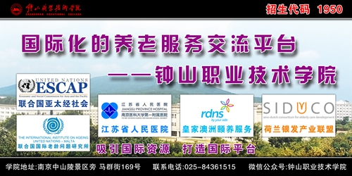2011年5月,“联合国亚太经社会”第67届大会上,60多个成员国一致通过《在亚太区域全面有效执行“马德里老龄问题国际行动计划”决议》(“联合国亚太经社会”67/5号决议),决议称:“我们高兴地注意到中国政府对社会老龄问题解决方案提供了支持,包括新近在中国南京钟山职业技术学院内设立的老年服务人才培训中心所提供的人力资源开发投入”。一所普通学校的名字出现在联合国的决议上,实属不易,这说明“钟山老年服务人力资源开发园区”项目已提升到国际关注地位。