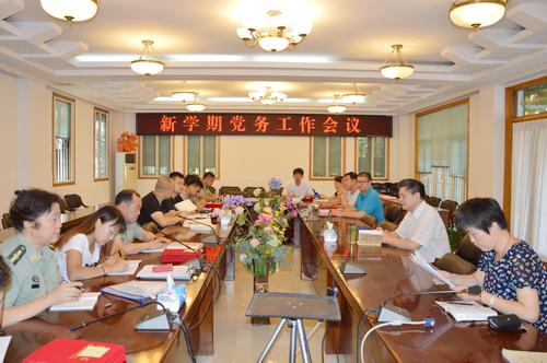 9月9日上午,我院在大会议室召开新学期党务工作会议,党委书记杨四海,各党总支书记、教师党支部书记及学生党支部书记参加了会议。会议由党委书记杨四海主持。