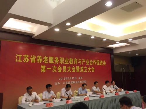 江苏省养老服务职业教育与产业合作促进会是由江苏经贸职业技术学院、钟山职业技术学院、江苏省老年公寓、江苏省老年公寓、常州市武进区金东方颐养中心、无锡就如城养老产业发展有限公司等从事养老服务的机构以及与养老服务业人才培养与交流相关的企事业单位、社会组织和个人组成的专业性、非营利性社会组织。本次会议由江苏民康老年服务中心沙维伟主任主持。江苏经贸职业技术学院院长薛茂云教授首先致辞;随后,该校老年产业管理学院石晓燕院长作了关于江苏省养老服务职业教育与产业合作促进会筹备的工作报告;江苏经贸职业技术学院老年服务与管理专业教研室陆小香主任宣读并由全体会员审议通过《江苏省养老服务职业教育与产业合作促进会章程》,选举产生了会长、副会长、理事、常务理事等。我院院长张琦当选为副会长,现代服务与管理学院副院长王港当选为常务理事,康复与护理学院副院长孙国庆当选为理事。