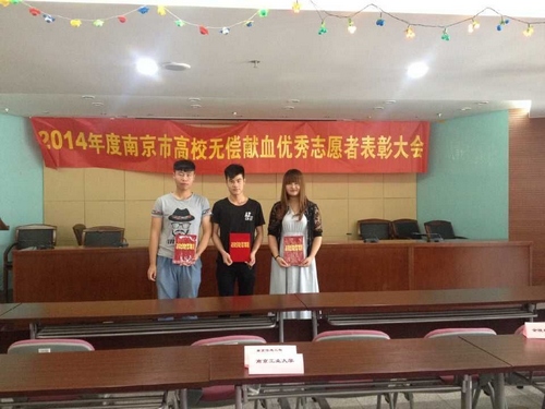 6月14日上午,南京市献血领导小组在南京红十字血液中心召开了南京市纪念第十二个世界献血者日表彰大会,会上表彰了2014年度全市无偿献血先进区、机关、单位和个人。我院荣获“南京市无偿献血先进单位”称号,现代服务与管理学院党总支书记陈伟同志荣获“南京市无偿献血先进工作者”称号,工业与信息化学院陈磊、现代服务与管理学院温婉娟、土木与环境工程学院习梓卿三位同学荣获“南京市无偿献血先进个人”称号。