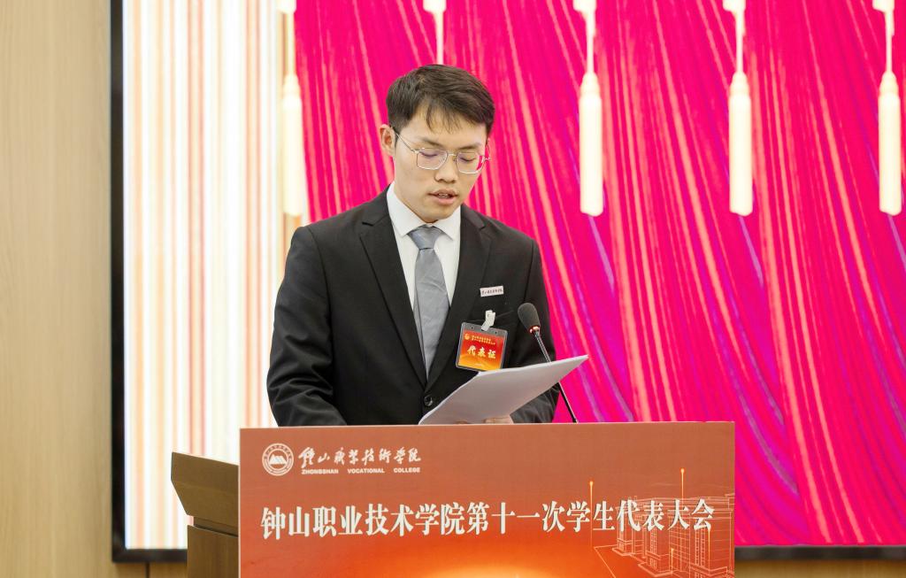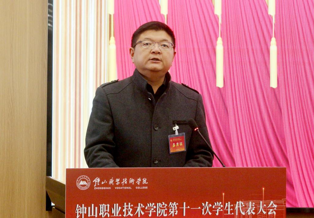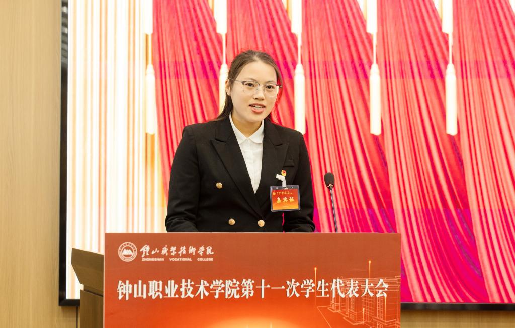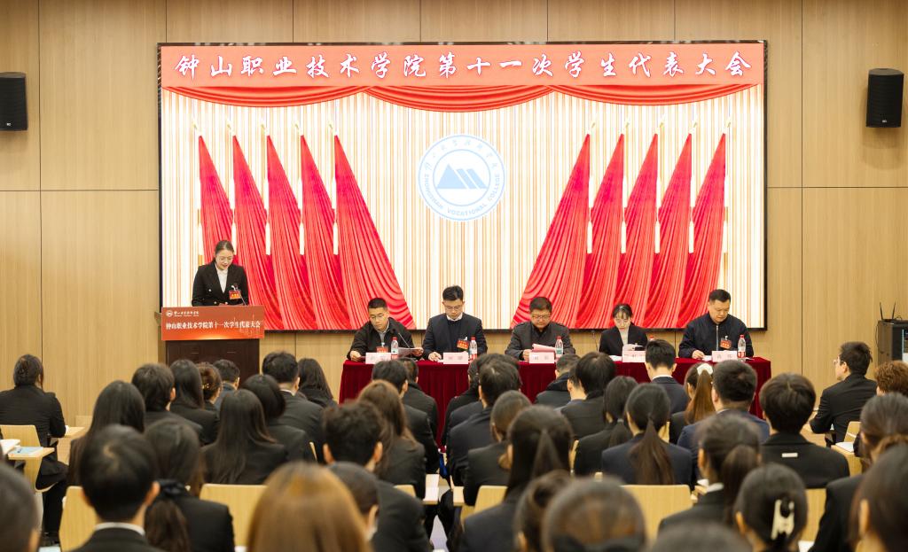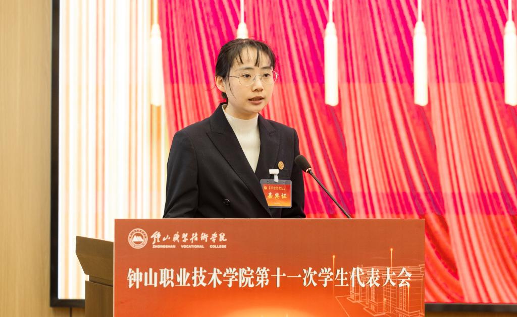 大会在庄严的国歌中正式拉开序幕。纪委书记、副校长黄磊对大会的召开表示热烈祝贺,充分肯定了学生会在思想政治引领、服务同学成长、校园文化建设等方面取得的成绩。他指出,当前,学校正处在谋划“十五五”发展规划、推进高质量发展的关键阶段,新征程上学生会组织要准确把握时代方位、时刻牢记初心使命,挺膺担当、再立新功,奋力开创我校学生会工作新局面。他提出四点希望,一是坚定理想信念,做跟党奋斗的笃行者;二是聚焦主责主业,做服务青年的实干者;三是勇担时代重任,做职教报国的奋进者;四是勇于改革创新,做组织建设的开拓者。他勉励同学们始终心怀“国之大者”,把个人学习成长同社会和人民的需要紧密结合,把青春汗水挥洒在民族复兴的伟大征程上,努力成长为有理想、敢担当、能吃苦、肯奋斗的新时代好青年,在奋力谱写全面建设社会主义现代化国家新篇章的征程中,展现钟山青年的担当与风采。