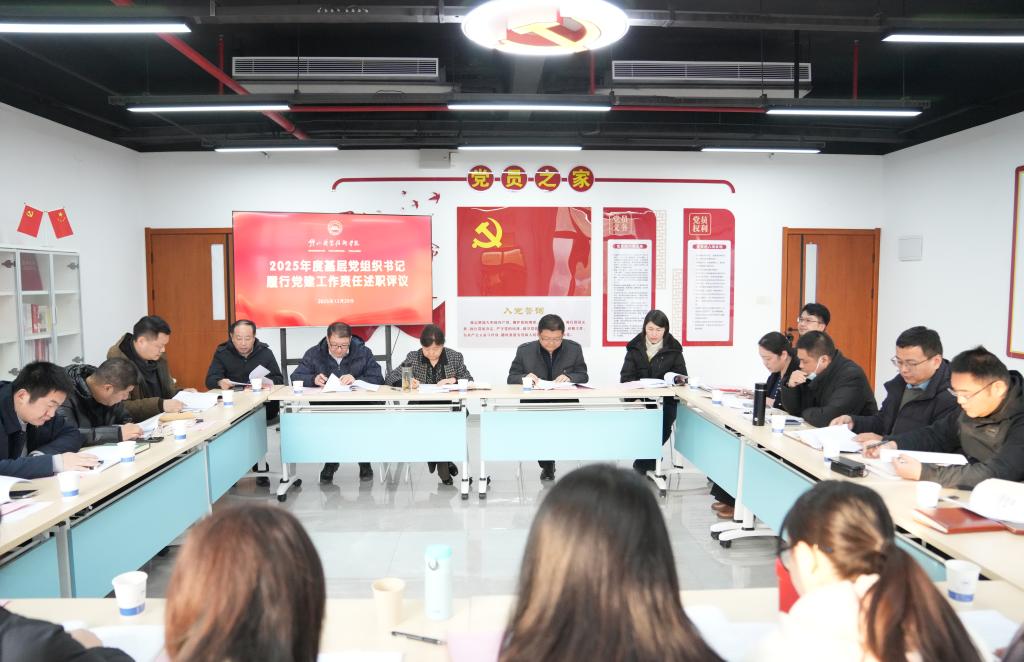 12月29日下午,我校召开2025年度基层党组织书记履行党建工作责任述职评议会。党委委员、纪委委员,党群部门负责人,马克思主义学院院长,党总支书记、机关党支部书记、教师及学生党支部书记参加会议。会议由党委书记翟天灵主持。