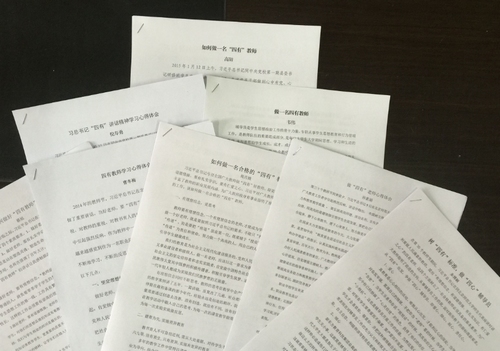 全体党员教师围绕主题进行了征文比赛,结合自身对“四有教师”的理解,撰写了从教以来对教育的感悟,坚定了自身的理想信念,此次比赛共收到征文26篇,党员教师们明确了四有教师的要求,最终,高阳获得了一等奖,倪寿勇、韦伟获得了二等奖,曹冬梅、周月娥、孙素娟、朱博娴、蔡旭获得了三等奖,徐赟等18名教师获得了优秀奖。