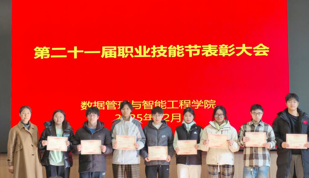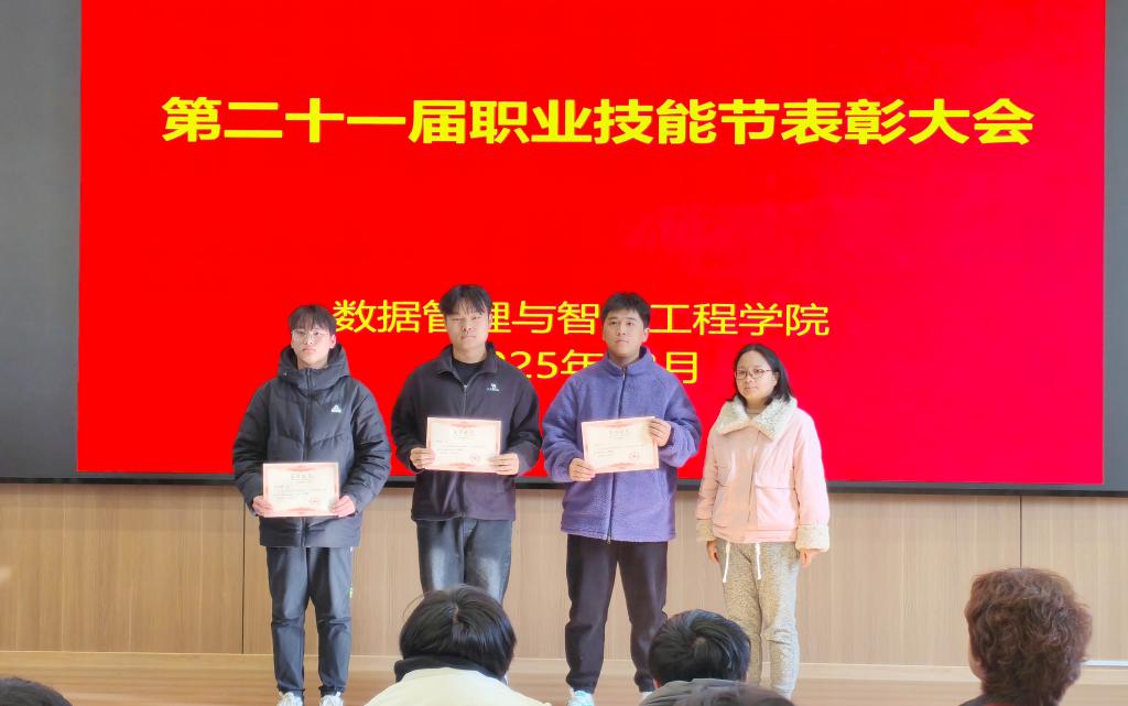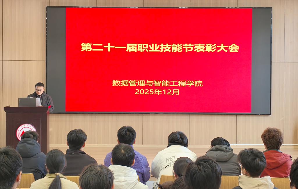 12月16日下午,数据管理与智能工程学院顺利举行第二十一届职业技能节表彰大会。学院领导、各系主任、竞赛指导教师及全体参赛学生代表参加会议,会议由学院副院长张虹主持。